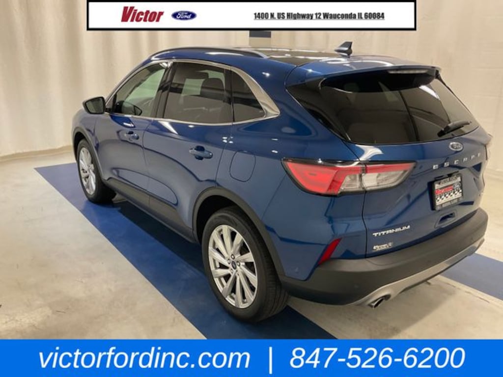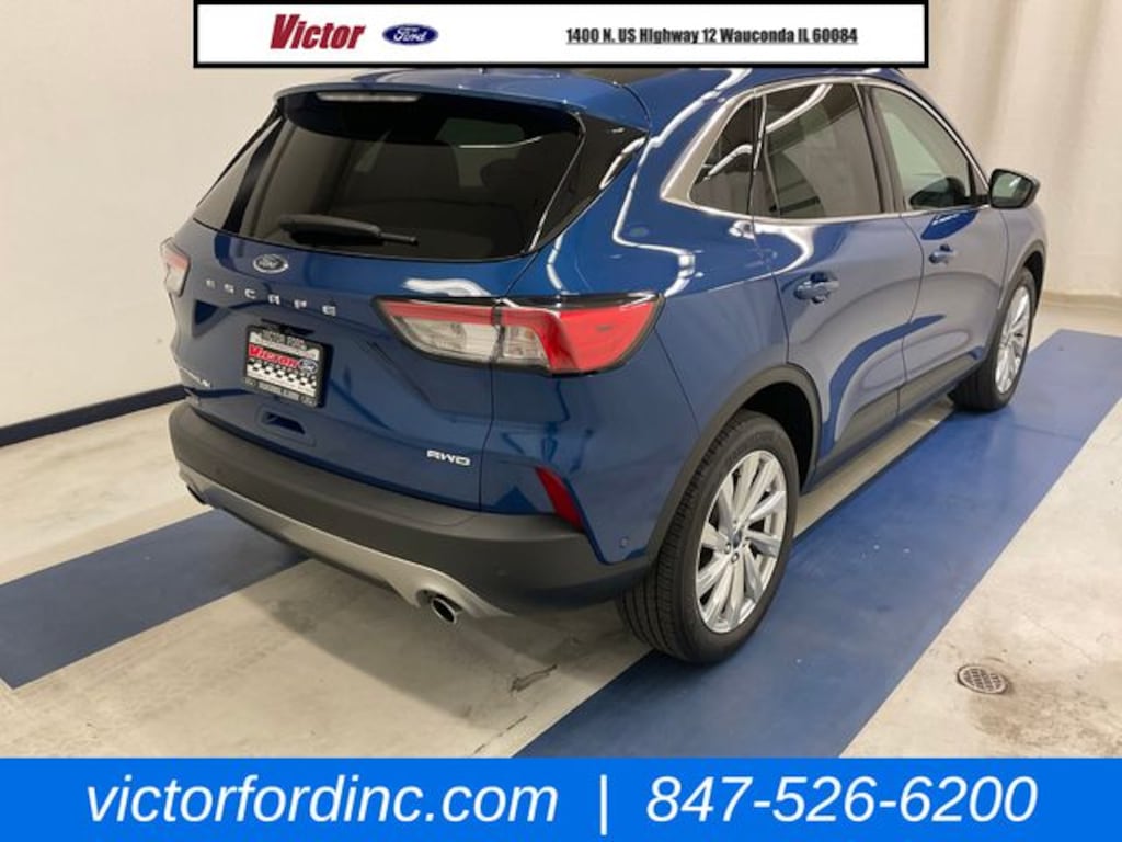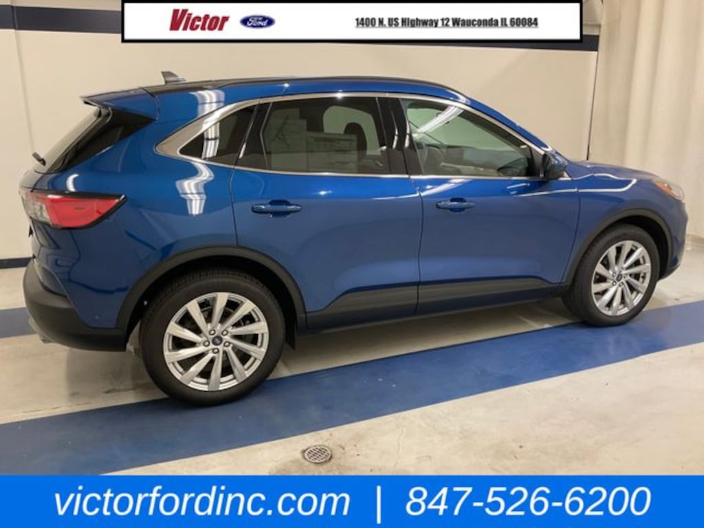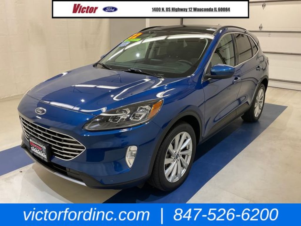 CARFAX One-Owner. Clean CARFAX. Atlas Blue Metallic 2022 Ford Escape Titanium AWD 8-Speed Automatic EcoBoost 2.0L I4 GTDi DOHC Turbocharged VCT ORIGINAL MSRP $42,075, 3.47 Axle Ratio, 4-Wheel Disc Brakes, 6 Speakers, ABS brakes, Active Park Assist 2.0, Air Conditioning, AM/FM radio: SiriusXM, AM/FM Stereo, Auto High-beam Headlights, Auto-dimming Rear-View mirror, Automatic temperature control, Black Roof-Rack Side Rails, Brake assist, Bumpers: body-color, Chrome 5-Bar Upper Grille w/Chrome Surround, Compass, Delay-off headlights, Driver door bin, Driver vanity mirror, Dual front impact airbags, Dual front side impact airbags, Electronic Stability Control, Emergency communication system: SYNC 3 911 Assist, Equipment Group 401A, Exterior Parking Camera Rear, FordPass Connect, Four wheel independent suspension, Front & Rear Floor Mats, Front & Rear Silver Skid Plates, Front anti-roll bar, Front Bucket Seats, Front Center Armrest, Front dual zone A/C, Front fog lights, Front reading lights, Fully automatic headlights, Garage door transmitter, Hands-Free Foot-Activated Liftgate Feature Removal, HD Radio, Head-Up Display, Heated ActiveX Trimmed Front Sport Contour Bucket Seats, Heated door mirrors, Heated front seats, Heated Leather-Trimmed Front Sport Contour Seats, Heated steering wheel, Illuminated entry, Knee airbag, Leather Wrapped Steering Wheel, Low tire pressure warning, Memory seat, Navigation System, Occupant sensing airbag, Outside temperature display, Overhead airbag, Overhead console, Panic alarm, Panoramic Vista Roof, Passenger door bin, Passenger vanity mirror, Power door mirrors, Power driver seat, Power Liftgate, Power passenger seat, Power steering, Power windows, Radio data system, Radio: B&O Sound System by Bang & Olufsen, Rain sensing wipers, Rear anti-roll bar, Rear reading lights, Rear seat center armrest, Rear window defroster, Rear window wiper, Remote keyless entry, Roof rack: rails only, Security system, Speed control, Speed-sensing steering, Speed-Sensitive Wipers, Split folding rear seat, Spoiler, Steering wheel mounted audio controls, SYNC 3 Communications & Entertainment System, Tachometer, Telescoping steering wheel, Tilt steering wheel, Titanium Elite Package, Traction control, Trip computer, Variably intermittent wipers, Voice-Activated Touchscreen Navigation System, Wheels: 19" Luster Nickel-Painted Aluminum, Wireless Charging Pad.