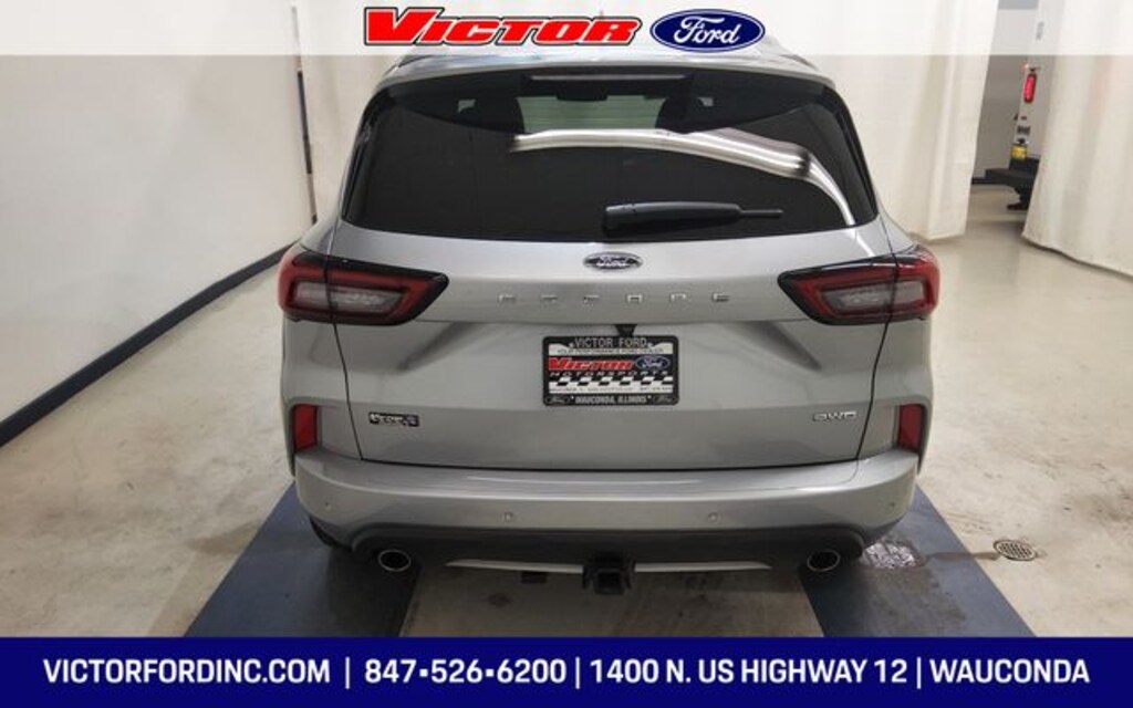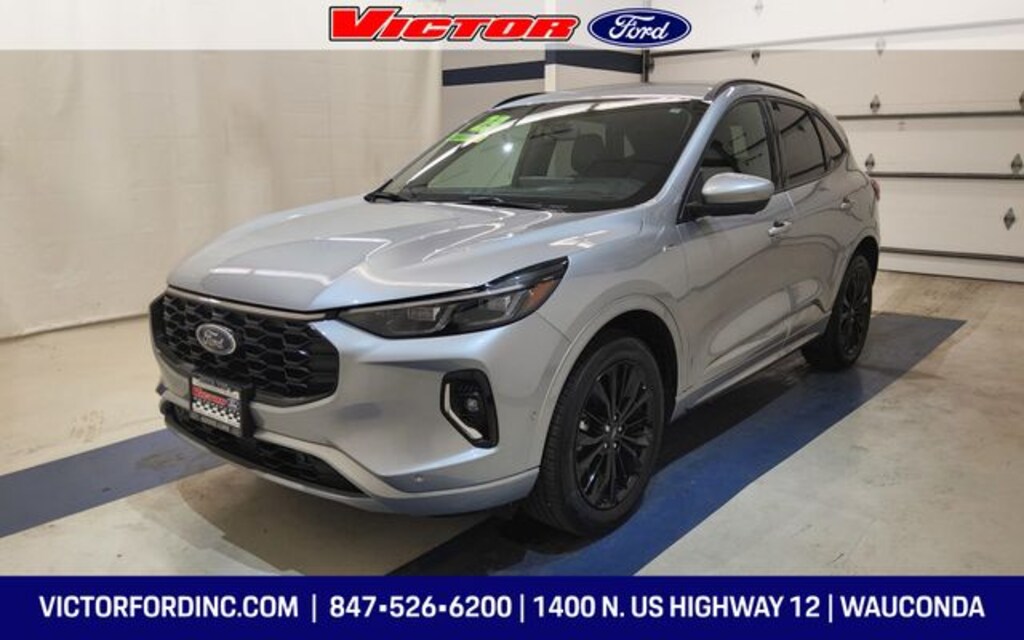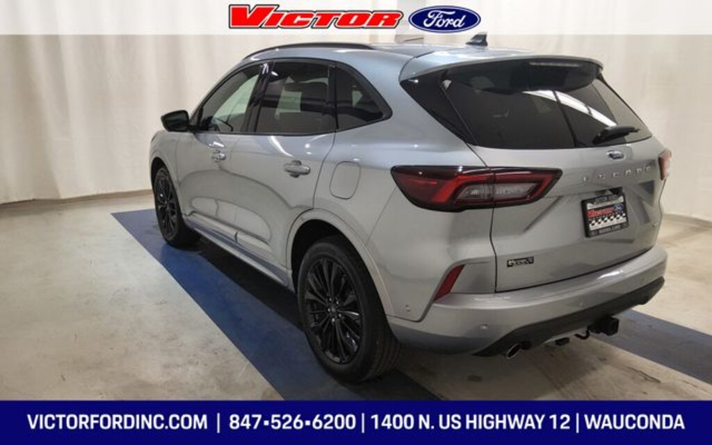 Clean CARFAX. Iconic Silver Metallic 2023 Ford Escape ST-Line Elite AWD 8-Speed Automatic EcoBoost 2.0L I4 GTDi DOHC Turbocharged VCT AWD, 2.91 Axle Ratio, 4-Wheel Disc Brakes, 6 Speakers, ABS brakes, Active Park Assist 2.0, Air Conditioning, Alloy wheels, AM/FM radio: SiriusXM, AM/FM Stereo, Auto High-beam Headlights, Auto-dimming Rear-View mirror, Automatic temperature control, Brake assist, Bumpers: body-color, Class II Trailer Tow Package, Compass, Delay-off headlights, Driver door bin, Driver vanity mirror, Dual front impact airbags, Dual front side impact airbags, Electronic Fuel Door Release, Electronic Stability Control, Emergency communication system: SYNC 4 911 Assist, Equipment Group 501A, Exterior Parking Camera Rear, FordPass Connect, Four wheel independent suspension, Front anti-roll bar, Front Bucket Seats, Front Center Armrest, Front dual zone A/C, Front fog lights, Front reading lights, Fully automatic headlights, Garage door transmitter, HD Radio, Head-Up Display, Heated door mirrors, Heated front seats, Heated Leather-Trimmed Front Sport Contour Seats, Heated steering wheel, Heated Vinyl/Cloth Front Sport Contour Bucket Seats, Illuminated entry, Knee airbag, Low tire pressure warning, Memory seat, Navigation system: Connected Navigation, Neutral Towing Capability, Occupant sensing airbag, Outside temperature display, Overhead airbag, Overhead console, Panic alarm, Passenger door bin, Passenger vanity mirror, Pedestrian Alert Sounder, Power door mirrors, Power driver seat, Power Liftgate, Power passenger seat, Power steering, Power windows, Premium Technology Package, Radio data system, Radio: B&O Sound System by Bang & Olufsen, Rain sensing wipers, Rear anti-roll bar, Rear reading lights, Rear seat center armrest, Rear window defroster, Remote keyless entry, Security system, Speed control, Speed-sensing steering, Speed-Sensitive Wipers, Split folding rear seat, Spoiler, Sport steering wheel, Steering wheel mounted audio controls, SYNC 4 w/Enhanced Voice Recognition, Telescoping steering wheel, Tilt steering wheel, Traction control, Trip computer, Variably intermittent wipers, Wheels: 19" Ebony-Painted Aluminum.
