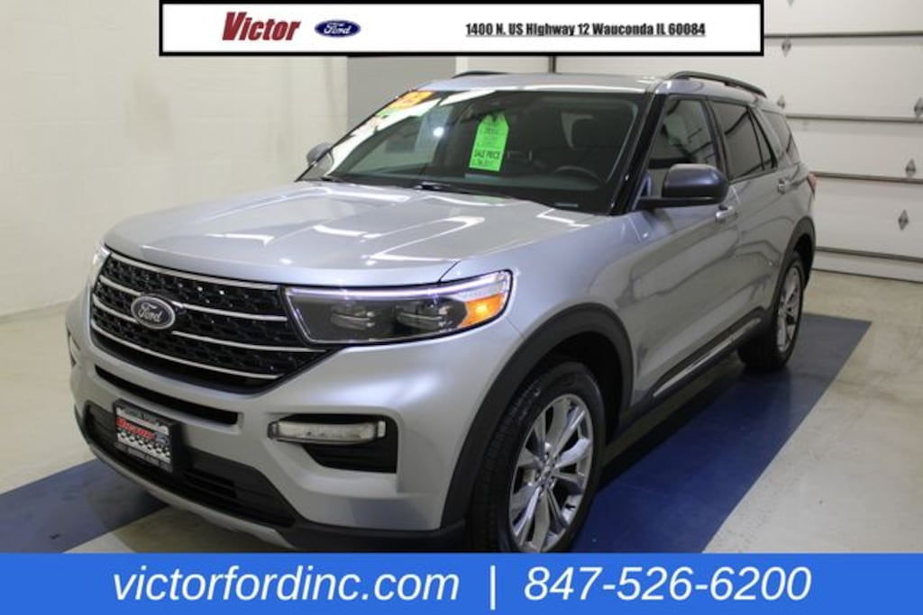 CARFAX One-Owner. Clean CARFAX. Iconic Silver Metallic 2023 Ford Explorer XLT 4WD 10-Speed Automatic 2.3L EcoBoost I-4 20" Premium Painted Aluminum Wheels, 3.58 Non-Limited-Slip Rear Axle Ratio, 3rd row seats: bench, 4-Wheel Disc Brakes, 4G LTE Wi-Fi Hotspot Credit, 6 Speakers, ABS brakes, Acoustic-Laminated Front Side Windows, Air Conditioning, Alloy wheels, AM/FM radio: SiriusXM, AM/FM Stereo, Auto High-beam Headlights, Auto Start-Stop Removal (DISC), Automatic temperature control, Brake assist, Bumpers: body-color, Class IV Trailer Tow Package, Compass, Delay-off headlights, Driver door bin, Driver vanity mirror, Dual front impact airbags, Dual front side impact airbags, Electronic Stability Control, Emergency communication system: SYNC 3 911 Assist, Equipment Group 202A, Evasive Steering Assist, Exterior Parking Camera Rear, Ford Co-Pilot360 Assist+, FordPass Connect, Four wheel independent suspension, Front & Second Row Floor Liners (16B), Front anti-roll bar, Front Bucket Seats, Front Center Armrest, Front dual zone A/C, Front reading lights, Fully automatic headlights, Heated ActiveX Captain's Chairs, Heated door mirrors, Heated front seats, Heated Steering Wheel, Illuminated entry, Intelligent Adaptive Cruise Control, Knee airbag, Leather steering wheel, LED Fog Lamps, Low tire pressure warning, Occupant sensing airbag, Outside temperature display, Overhead airbag, Overhead console, Panic alarm, Passenger door bin, Passenger vanity mirror, Power door mirrors, Power driver seat, Power Liftgate, Power passenger seat, Power steering, Power windows, Rear air conditioning, Rear anti-roll bar, Rear reading lights, Rear window defroster, Rear window wiper, Remote keyless entry, Remote Start System, Roof rack: rails only, SecuriCode Keyless Entry Keypad, Security system, Speed control, Speed Sign Recognition, Speed-sensing steering, Speed-Sensitive Wipers, Split folding rear seat, Spoiler, Steering wheel mounted audio controls, SYNC 3 Communications & Entertainment System, SYNC 3/Apple CarPlay/Android Auto, Tachometer, Telescoping steering wheel, Tilt steering wheel, Traction control, Trip computer, Twin Panel Moonroof, Variably intermittent wipers, Voice-Activated Touchscreen Navigation System.