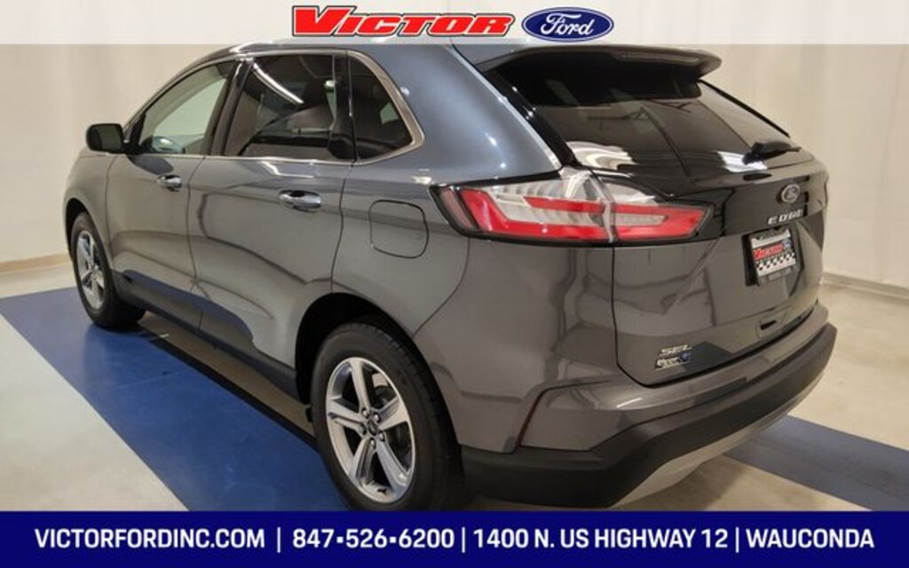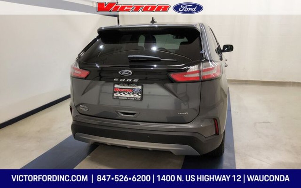 Carbonized Gray Metallic 2024 Ford Edge SEL AWD 8-Speed Automatic EcoBoost 2.0L I4 GTDi DOHC Turbocharged VCT 110V/150W AC Power Outlet, 3.80 Axle Ratio, 4-Wheel Disc Brakes, 6 Speakers, ABS brakes, ActiveX Trimmed Heated Bucket Seats, Air Conditioning, Alloy wheels, AM/FM radio: SiriusXM with 360L, AM/FM Stereo, Auto High-beam Headlights, Auto-dimming Rear-View mirror, Automatic temperature control, Brake assist, Bumpers: body-color, Compass, Convenience Package, Delay-off headlights, Driver door bin, Driver vanity mirror, Dual front impact airbags, Dual front side impact airbags, Electronic Stability Control, Emergency communication system: SYNC 4 911 Assist, Equipment Group 201A, Fog Lamps w/Iconic Silver Bezel, FordPass Connect, Four wheel independent suspension, Front anti-roll bar, Front Bucket Seats, Front Center Armrest w/Storage, Front dual zone A/C, Front License Plate Bracket, Front reading lights, Fully automatic headlights, Heated door mirrors, Heated front seats, Heated Steering Wheel, Illuminated entry, Knee airbag, Leather steering wheel, Low tire pressure warning, Occupant sensing airbag, Outside temperature display, Overhead airbag, Overhead console, Panic alarm, Panoramic Vista Roof, Passenger door bin, Passenger vanity mirror, Perimeter Alarm, Power door mirrors, Power driver seat, Power Liftgate, Power passenger seat, Power steering, Power windows, Rear anti-roll bar, Rear Parking Sensors, Rear reading lights, Rear seat center armrest, Rear window defroster, Rear window wiper, Remote keyless entry, Remote Start System, SiriusXM w/360L, Speed control, Speed-Sensitive Wipers, Split folding rear seat, Spoiler, Steering wheel mounted audio controls, SYNC 4A w/Enhanced Voice Recognition, Tachometer, Telescoping steering wheel, Tilt steering wheel, Traction control, Trip computer, Universal Garage Door Opener (UGDO), Variably intermittent wipers, Wheels: 18" Bright-Machined Aluminum, Wireless Charging Pad.