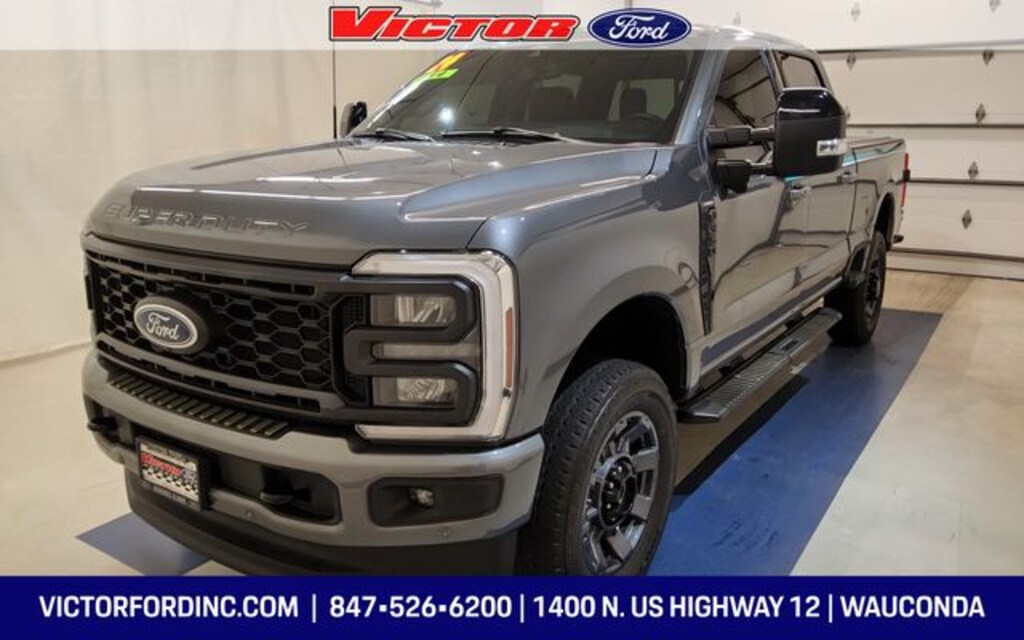 CARFAX One-Owner. Clean CARFAX. Carbonized Gray Metallic 2024 Ford F-350SD Lariat 4WD 10-Speed Automatic 7.3L V8 PFI OHV 16V Federal 430hp 250 Amp Alternator (Gas), 4-Way Adjustable Headrests, 4-Wheel Disc Brakes, 8 Speakers, ABS brakes, Adjustable pedals, Air Conditioning, All-Weather Floor Mats, Alloy wheels, AM/FM radio: SiriusXM with 360L, Auto High-beam Headlights, Auto tilt-away steering wheel, Auto-dimming Rear-View mirror, Automatic High Beam, Automatic temperature control, Black Tow Hooks, BLIS w/Cross-Traffic Alert, Body-Color Front & Rear Bumpers, Brake assist, Chrome Exhaust Tip, Compass, Dark Painted Grille, Delay-off headlights, Driver door bin, Driver vanity mirror, Dual front impact airbags, Dual front side impact airbags, Electronic Stability Control, Electronic-Locking w/4.30 Axle Ratio, Emergency communication system: SYNC 4 911 Assist, Exterior Parking Camera Rear, Flow-Through Console, Front anti-roll bar, Front Bucket Seats, Front Center Armrest, Front dual zone A/C, Front fog lights, Front Leather-Trimmed 40/Console/40 Seats, Front License Plate Bracket, Front reading lights, Front Sensing System, Fully automatic headlights, Garage door transmitter, GVWR: 11,499 lb Payload Package, Head-Up Display, Heated door mirrors, Heated front seats, Heated rear seats, Heated steering wheel, Illuminated entry, Intelligent Adaptive Cruise Control w/Stop-and-Go, Lane-Keeping System, Lariat Ultimate Package, Leather steering wheel, LED Roof Clearance Lights, Low tire pressure warning, Memory seat, Navigation system: Connected Navigation (includes complimentary 1-year trial), Order Code 618A, Outside temperature display, Overhead airbag, Overhead console, Panic alarm, Passenger door bin, Passenger vanity mirror, Pedal memory, Platform Running Boards, Post-Collision Braking, Power door mirrors, Power driver seat, Power passenger seat, Power steering, Power windows, Power-Deployable Running Boards, Pre-Collision Assist, Pro Trailer Backup Assist, Pro Trailer Hitch Assist, Radio: B&O Sound System by Bang & Olufsen, Radio: B&O Unleashed Sound System by Bang & Olufsen, Rain sensing wipers, Rear reading lights, Rear seat center armrest, Rear step bumper, Rear window defroster, Remote keyless entry, Security system, SiriusXM Radio w/360L, Snow Plow Prep Package, Speed control, Split folding rear seat, Sport 4x4 Box Side Decal, Sport Appearance Package, Steering wheel memory, Steering wheel mounted audio controls, SYNC 4 w/Enhanced Voice Recognition, Tachometer, Tailgate Step & Handle, Telescoping steering wheel, Tilt steering wheel, Traction control, Trip computer, Turn signal indicator mirrors, Twin Panel Power Moonroof, Upfitter Switches (6), Variably intermittent wipers, Ventilated front seats, Wheels: 20" Dark Carbonized Gray Painted Aluminum, Wireless Charging Pad.