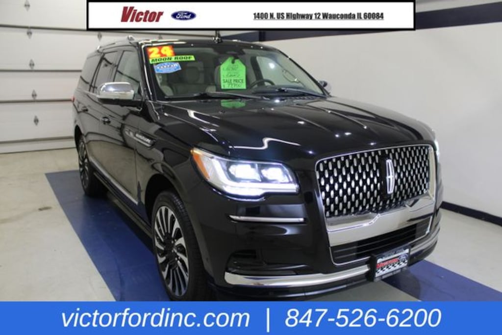 CARFAX One-Owner. Clean CARFAX. Infinite Black Metallic Clearcoat 2024 Lincoln Navigator Black Label 4WD 10-Speed Automatic V6 Tonneau Cover, FORD/LINCOLN EXECUTIVE DRIVEN VEHICLE, SECOND ROW BENCH SEAT GREAT FOR KIDS AND DOGS!, 28 Speakers, 2nd Row Htd/Ventilated 40/20/40 Split Bench Seat, 3.73 Axle Ratio, 3rd row seats: split-bench, 4-Wheel Disc Brakes, ABS brakes, Adaptive suspension, Adjustable pedals, Air Conditioning, All-Weather Floor Liners w/Carpet Floor Mats, Alloy wheels, AM/FM radio: SiriusXM with 360L, Apple CarPlay/Android Auto, Audio memory, Auto High-beam Headlights, Auto Start-Stop Technology, Auto tilt-away steering wheel, Auto-dimming door mirrors, Auto-dimming Rear-View mirror, Auto-leveling suspension, Automatic temperature control, Bodyside moldings, Brake assist, Bumpers: body-color, Compass, Delay-off headlights, Driver door bin, Driver vanity mirror, Driver's Seat Mounted Armrest, Dual front impact airbags, Dual front side impact airbags, Electronic Stability Control, Emergency communication system: 911 Assist, Equipment Group 800A Black Label, Exterior Parking Camera Rear, Floor Carpet/Mats - Espresso w/Dinamica Suede, Four wheel independent suspension, Front anti-roll bar, Front Bucket Seats, Front dual zone A/C, Front fog lights, Front reading lights, Fully automatic headlights, Garage door transmitter, Genuine wood console insert, Genuine wood door panel insert, Head restraints memory, Headliner - Alpine Dinamica Suede, Heads-Up Display, Heated door mirrors, Heated front seats, Heated rear seats, Heated steering wheel, HVAC memory, Illuminated entry, Lane Departure Warning System, Leather steering wheel, Leather-Wrapped Interior - Alpine w/Black Stitch, Low tire pressure warning, Memory seat, Navigation system: Connected Navigation (1-year trial), Occupant sensing airbag, Outside temperature display, Overhead airbag, Overhead console, Panic alarm, Passenger door bin, Passenger seat mounted armrest, Passenger vanity mirror, Pedal memory, Power adjustable front head restraints, Power adjustable rear head restraints, Power door mirrors, Power driver seat, Power Liftgate, Power moonroof: Panoramic Vista Roof, Power passenger seat, Power steering, Power windows, Radio data system, Radio: Revel Ultima 3D Audio System w/28 Speakers, Rain sensing wipers, Rear air conditioning, Rear anti-roll bar, Rear audio controls, Rear reading lights, Rear seat center armrest, Rear window defroster, Rear window wiper, Reclining 3rd row seat, Remote keyless entry, Security system, Silverwood Recon Appliques, SiriusXM w/360L, Speed control, Speed-sensing steering, Speed-Sensitive Wipers, Split folding rear seat, Spoiler, Steering wheel memory, Steering wheel mounted audio controls, SYNC 4 Communications & Entertainment System, Tachometer, Telescoping steering wheel, Tilt steering wheel, Traction control, Trip computer, Turn signal indicator mirrors, Variably intermittent wipers, Venetian Lthr Auto Htd/Ventilatd Capt's Chairs (B), Ventilated front seats, Ventilated rear seats, Voice-Activated Touchscreen Navigation System, Wheels: 22" 14-Spoke Bright Machined Aluminum.