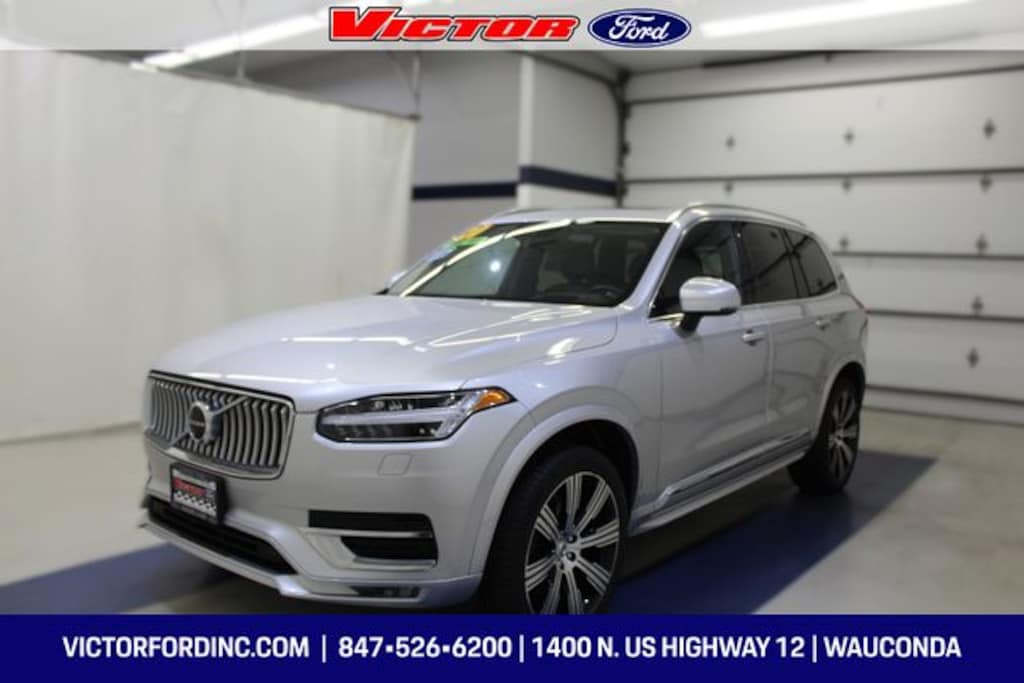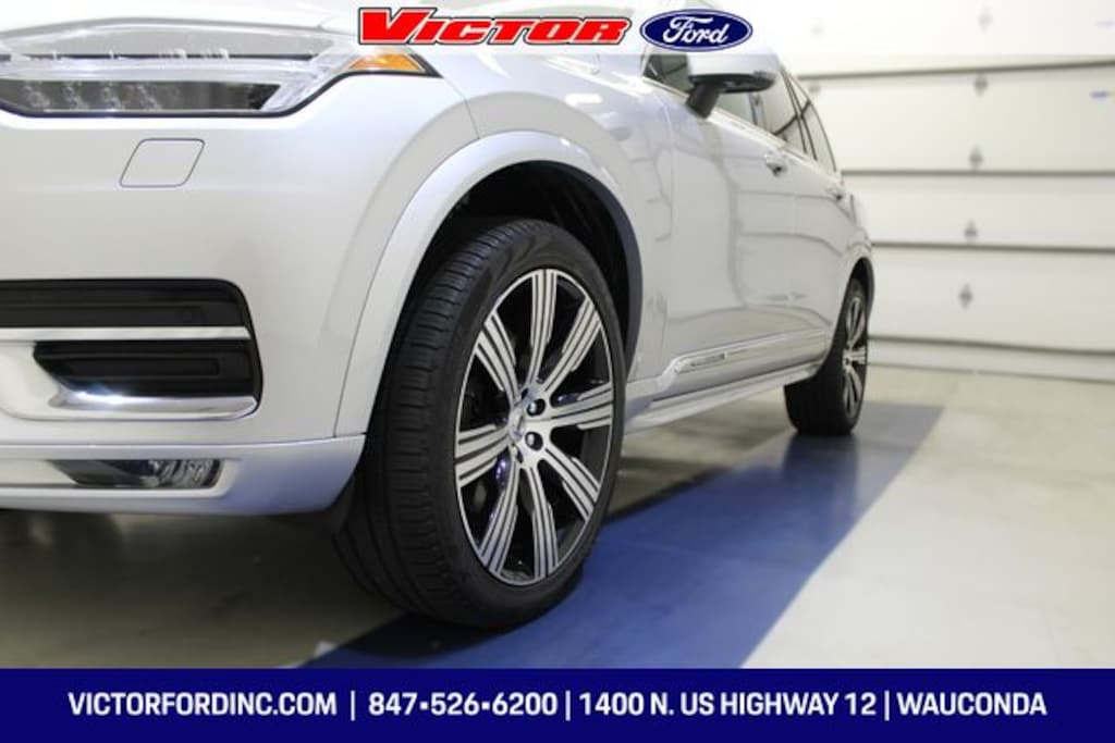 CARFAX One-Owner. Clean CARFAX. Bright Silver Metallic 2020 Volvo XC90 T6 Inscription AWD Automatic with Geartronic I4 Turbo Very Clean Local Trade, 14 Speakers, 360 Degree Surroundview Camera, 3rd row seats: bucket, 4-Corner Air Suspension w/Four-C Active Chassis, 4-Wheel Disc Brakes, ABS brakes, Advanced Package, Air Conditioning, Alloy wheels, AM/FM radio: SiriusXM, Anti-whiplash front head restraints, Apple CarPlay/Android Auto, Auto High-beam Headlights, Auto-dimming door mirrors, Auto-dimming Rear-View mirror, Automatic temperature control, Bodyside moldings, Brake assist, Bumpers: body-color, Delay-off headlights, Driver door bin, Driver vanity mirror, Dual front impact airbags, Dual front side impact airbags, Electronic Stability Control, Emergency communication system: Volvo On-Call, Exterior Parking Camera Rear, Four wheel independent suspension, Front anti-roll bar, Front Bucket Seats, Front Center Armrest w/Storage, Front dual zone A/C, Front fog lights, Front reading lights, Fully automatic headlights, Garage door transmitter: HomeLink, Genuine wood dashboard insert, Genuine wood door panel insert, Graphical Head-Up Display (HUD), harman/kardon® Speakers, Headlight Cleaning System, Heated & Ventilated Front Comfort Seats, Heated door mirrors, Heated front seats, Heated Rear Seats & Heated Steering Wheel, Heated Rear Seats, Outer Positions, Heated Steering Wheel, Illuminated entry, Knee airbag, Leather Shift Knob, LED Headlights w/Active Bending Lights, Low tire pressure warning, Memory seat, Nappa Leather Seating Surfaces, Navigation System, Occupant sensing airbag, Outside temperature display, Overhead airbag, Panic alarm, Passenger door bin, Passenger vanity mirror, Power door mirrors, Power driver seat, Power Liftgate, Power moonroof, Power passenger seat, Power steering, Power windows, Premium audio system: Sensus Connect, Radio data system, Radio: harman/kardon Premium Sound w/Sensus Nav Pro, Rain sensing wipers, Rear air conditioning, Rear anti-roll bar, Rear dual zone A/C, Rear fog lights, Rear reading lights, Rear window defroster, Rear window wiper, Remote keyless entry, Roof rack: rails only, Security system, Speed control, Speed-sensing steering, Split folding rear seat, Spoiler, Steering wheel mounted audio controls, Tachometer, Telescoping steering wheel, Tilt steering wheel, Traction control, Trip computer, Turn signal indicator mirrors, Variably intermittent wipers, Ventilated front seats, Wheels: 21" 8-Multi Spoke Black Diamond-Cut Alloy.